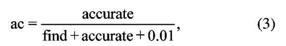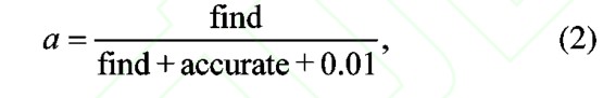 其中r為召回率;find為預(yù)校對文本中查出來的真正錯誤個數(shù),error為預(yù)校對文本中實際錯誤的個數(shù);0.01為平滑系數(shù)。