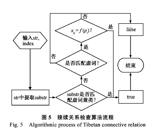 4 藏文分詞,匹配詞典, 若匹配成功轉(zhuǎn)到 5,否則標記錯誤標記,并轉(zhuǎn)到 5;