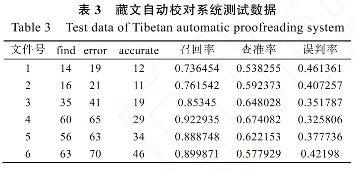 格助詞和不自由虛詞中“???????????????”緊縮詞識別和還原,不僅存在識別的難度,還存在還原的難度,更存在接續(xù)關(guān)系判斷的難度,也是算法召回率和查準率降低的主要原因。例如 “ ???????????” 等。為了解決此問題,本文將緊縮詞的接續(xù)關(guān)系檢查納入到拼寫檢查模塊中, 然后進行接續(xù)關(guān)系檢查,但仍然存在“????” 的識別問題。表 3 的數(shù)據(jù)是改進后的測試結(jié)果。