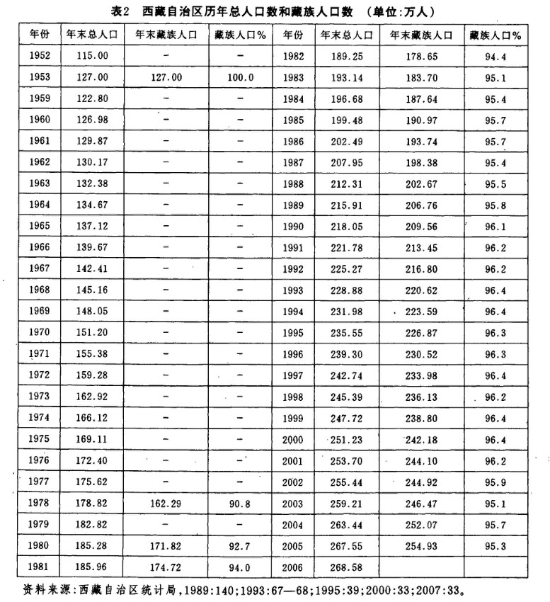 本文以1982、1990年和2000年的人口普查數(shù)據(jù)和歷年政府公布的年度統(tǒng)計數(shù)字為基礎(chǔ),簡略分析自1990年以來西藏自治區(qū)人口所發(fā)生的主要變化。