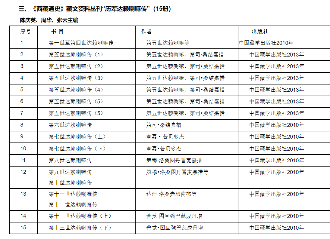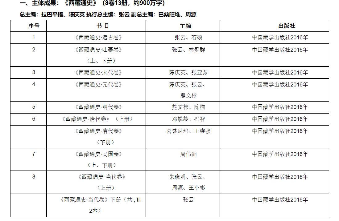 最后還要補充一點,《西藏通史》項目的成果是較為豐富的,除了主體成果之外,還有多項輔助性成果,羅列如下,以饗讀者。