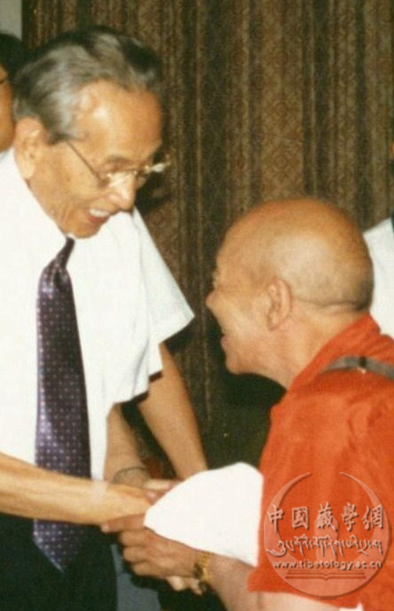 阿沛·阿旺晉美與著名藏醫(yī)措如·次朗握手