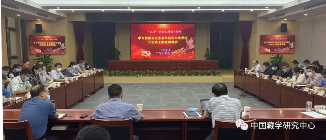 9月15日,中國藏學(xué)研究中心科研辦黨支部、辦公室黨支部、機(jī)關(guān)黨委(人事辦公室)黨支部(以下簡(jiǎn)稱“三辦”黨支部)聯(lián)合舉辦主題黨日活動(dòng),集體學(xué)習(xí)領(lǐng)會(huì)習(xí)近平總書記在中央黨校(國家行政學(xué)院)中青年干部培訓(xùn)班2020年秋季班、2021年春季班和秋季班開班式上的重要講話精神,激勵(lì)黨員干部牢記初心使命,錘煉黨性修養(yǎng),提高工作本領(lǐng),在服務(wù)和保障中心工作中奮勇爭(zhēng)先、建功立業(yè)。
