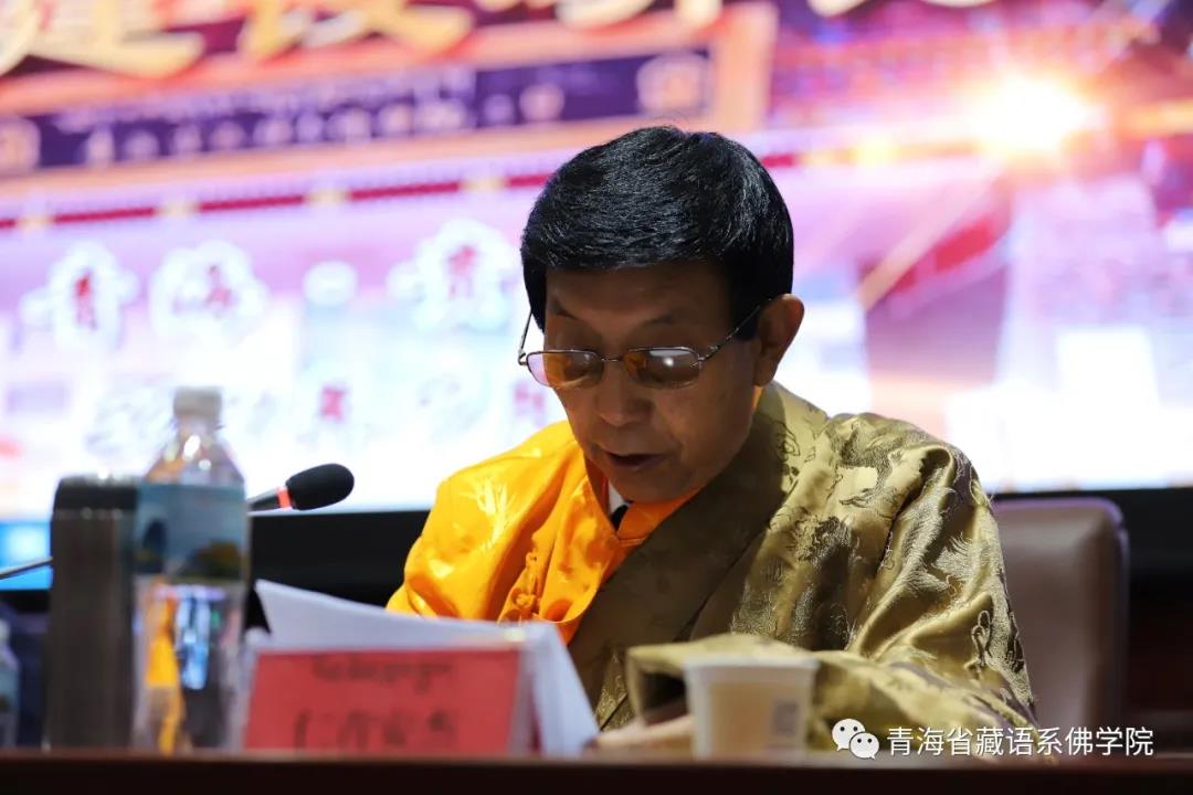 (青海省政協(xié)副主席、省藏語系佛學(xué)院院長仁青安杰致辭)