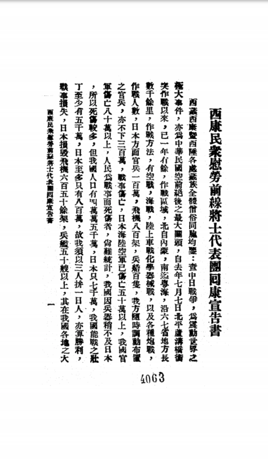 西康民眾慰勞前線將士代表團(tuán)回康書-漢文1
