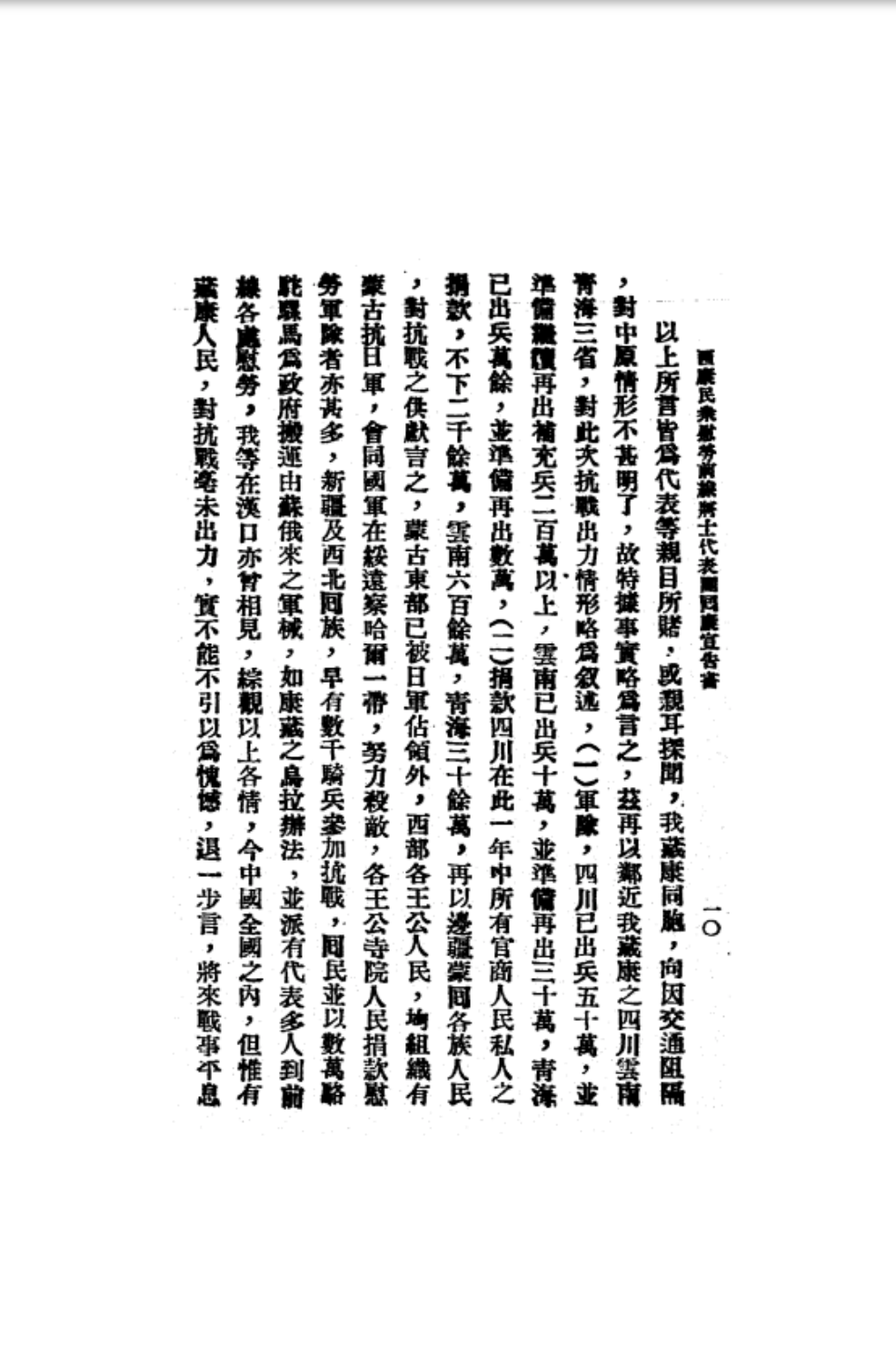 西康民眾慰勞前線將士代表團(tuán)回康書-漢文10