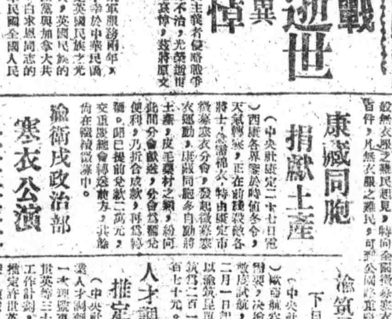 康藏同胞捐獻土產(chǎn)(《新華日報》1939年11月28日)
