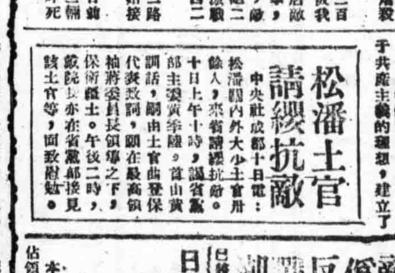 松潘土官請纓抗敵(《新華日報》1939年4月11日)
