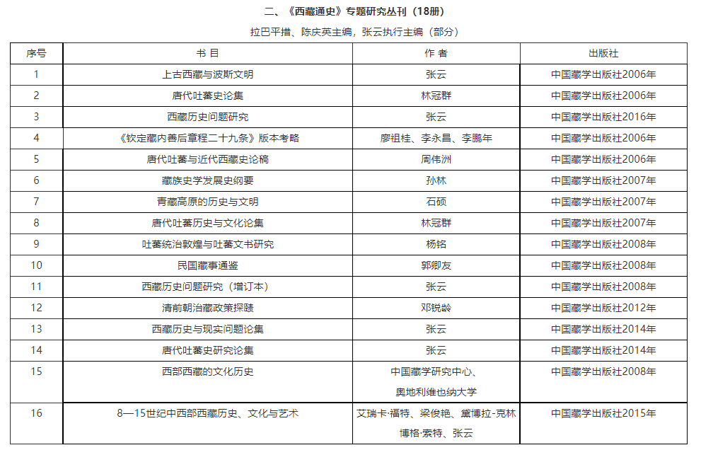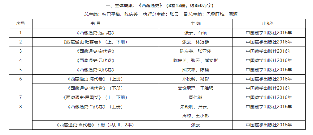 最后還要補充一點,《西藏通史》項目的成果是較為豐富的,除了主體成果之外,還有多項輔助性成果,羅列如下,以饗讀者。
