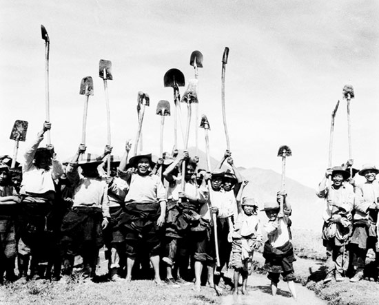正在修水渠的藏族群眾,聽到民主改革的決議時(shí)歡欣鼓舞(陳宗烈 攝)