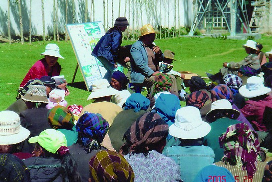 向農(nóng)牧民宣傳婦幼保健知識(shí)(圖片來(lái)源:《中華通典·西藏卷》)