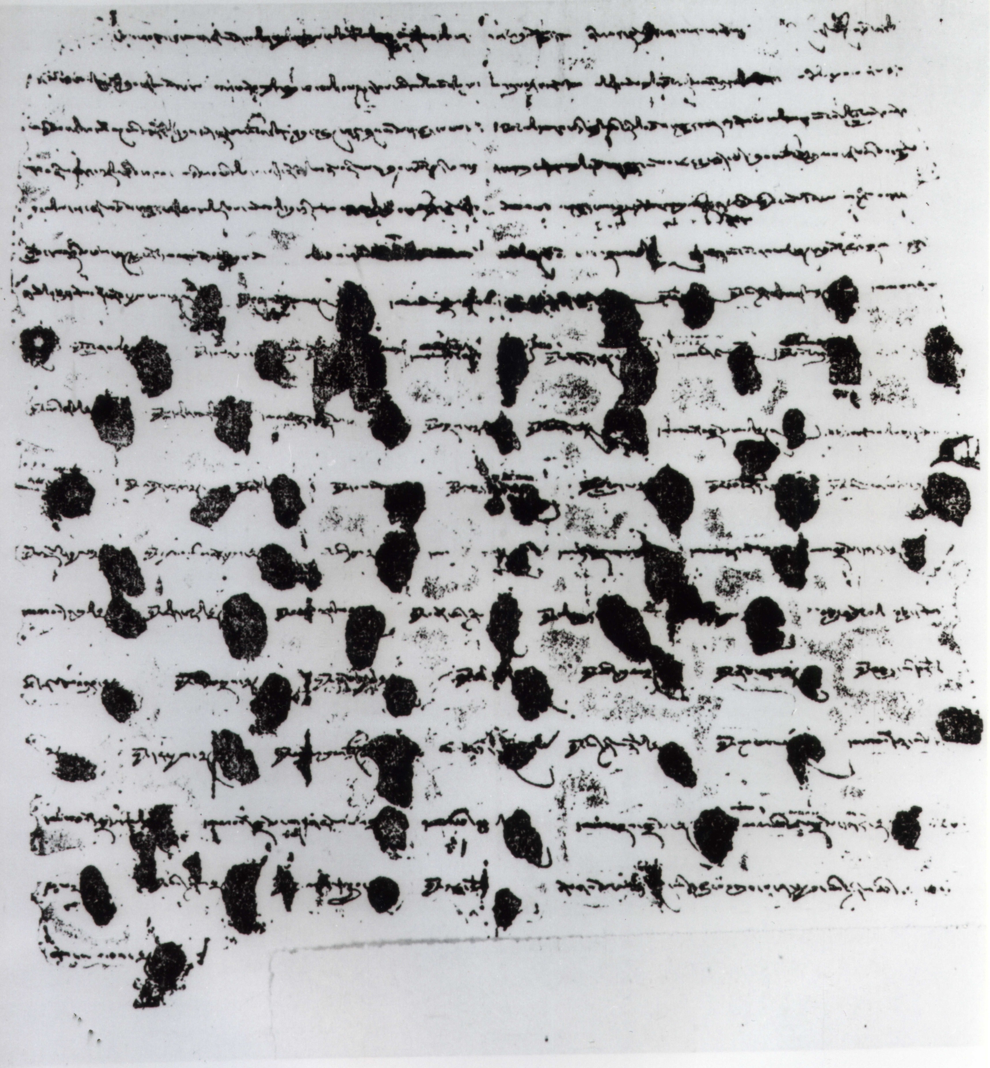 1956年7月25日,拉薩北部地區(qū)有65個農(nóng)民聯(lián)名寫信給十四世達賴喇嘛,急迫要求改革。信上說:“我們都是種地的農(nóng)民,比任何人都更焦急地盼望實行改革?!鄙蠄D為65個農(nóng)民按手印的聯(lián)名信。(陳宗烈 攝)