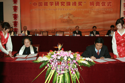 中國藏學研究珠峰獎捐資儀式上雙方代表簽字