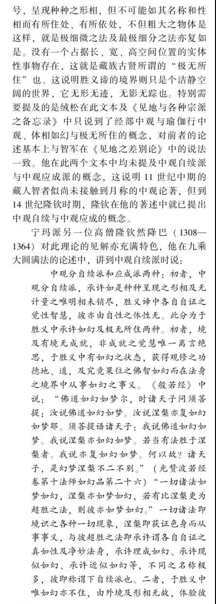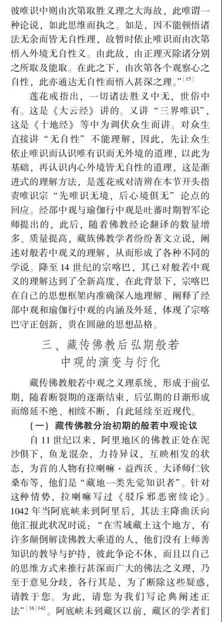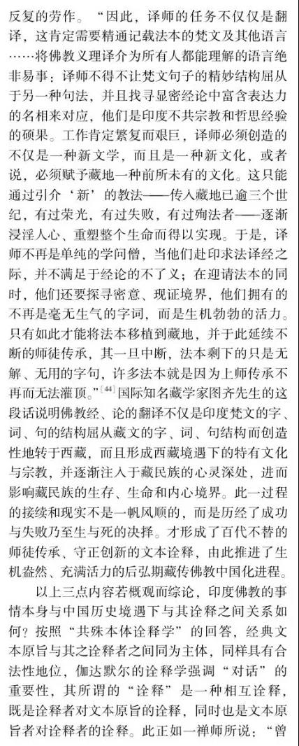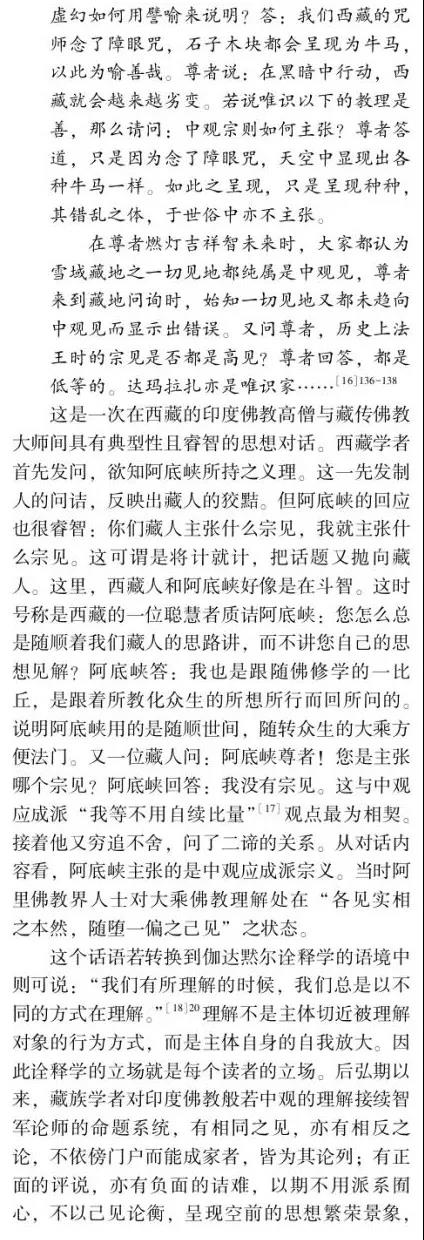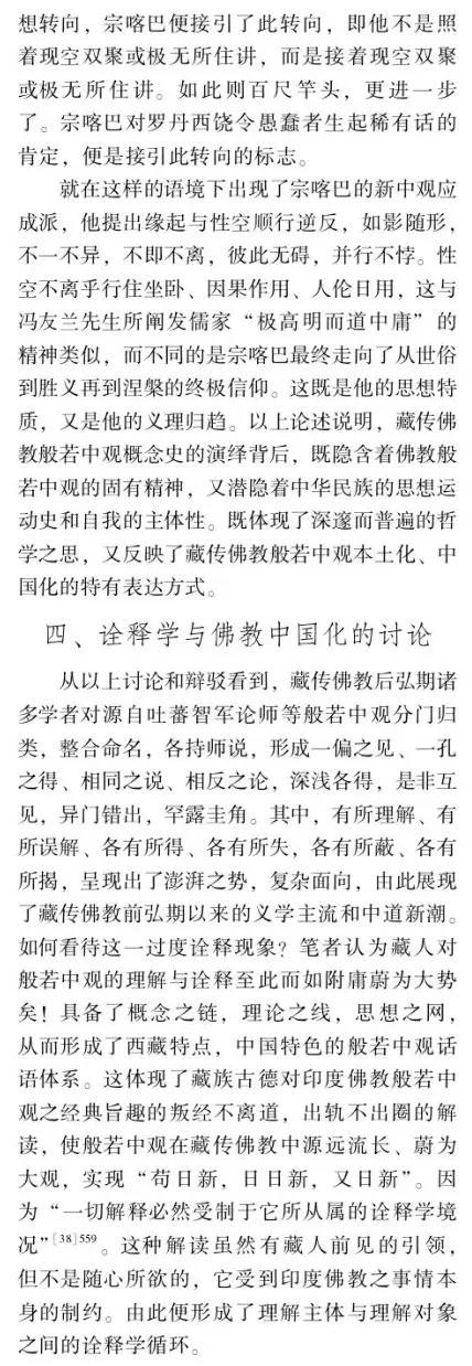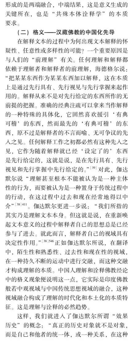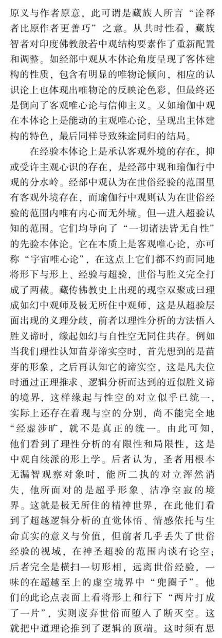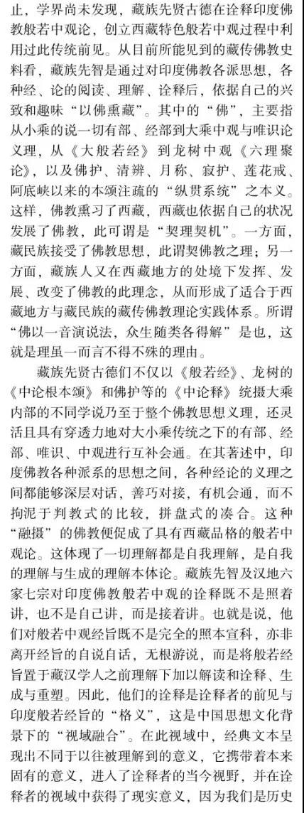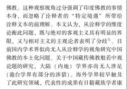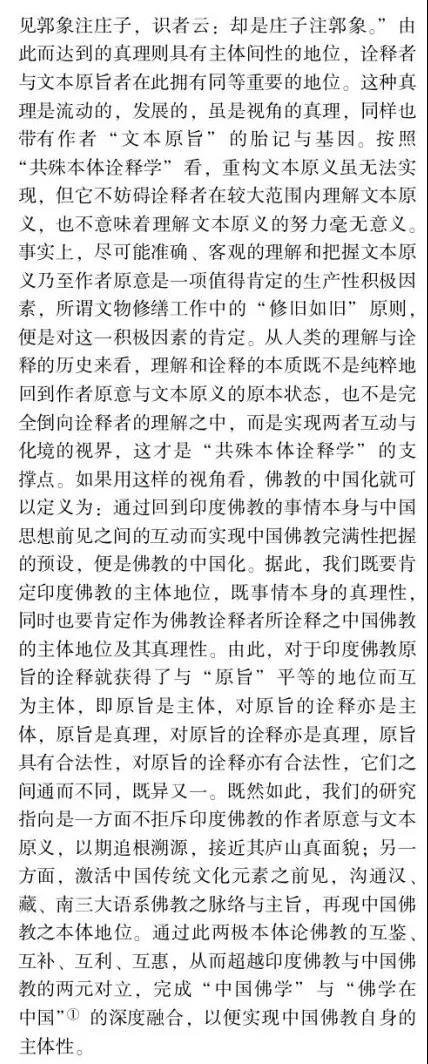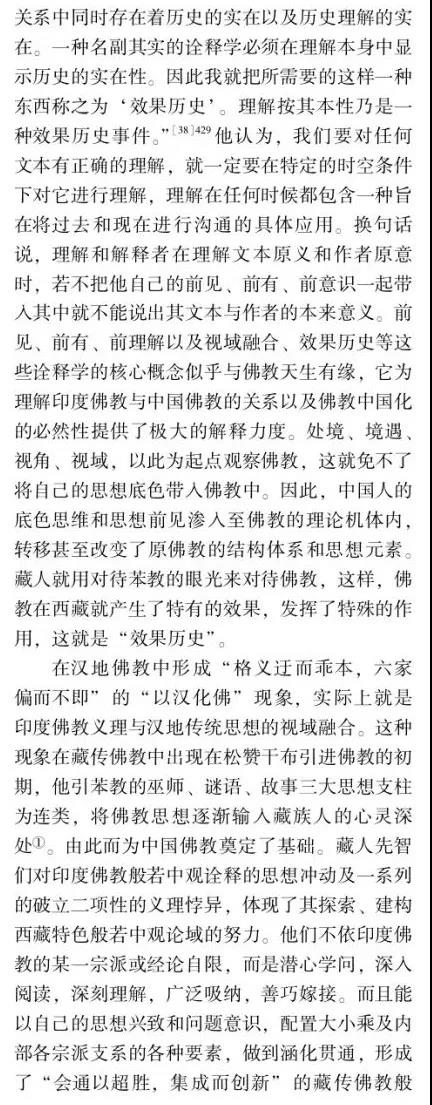 摘要:佛教中國化問題的提出和討論由來已久,并且延續(xù)至今仍在研討,但由于缺乏其衡定的學(xué)理準(zhǔn)則,還存在眾多疑問需要厘清。如果按舊有的語義和路數(shù)探究下去,盡管還有很多新的史料可能披露,但因方法論上的瓶頸所限,很難在理念上有新的突破。這說明佛教中國化的研判面臨著學(xué)理衡定和范式轉(zhuǎn)換的挑戰(zhàn)。本文以大量尚未漢譯的藏傳佛教般若中觀論的系列藏文史料鏈為依據(jù),以藏傳佛教般若中觀發(fā)展的歷史脈絡(luò)為線索,輔以漢地佛教在地化的時(shí)空間距為參照,以西方詮釋學(xué)與中國傳統(tǒng)詮釋話語雙輪驅(qū)動(dòng)的視角聚焦佛教在中國西藏與漢地自我詮釋與意義增長的本體論事實(shí)。本文提出佛教中國化過程經(jīng)歷了以印度佛教的文本原義與作者原意為主的方法論詮釋,即我注六經(jīng);以中國漢地和西藏的讀者及文本為主的本體論詮釋,即六經(jīng)注我,從而形成了印度佛教與中國佛教主體間性的雙本體論結(jié)構(gòu)體系,二者既一又異,通而不同,由此走了中國佛教三大語系各自的本土化歷程。藏傳佛教般若中觀論域中六大特色命題的產(chǎn)出及各教派人士見仁見智的解讀便是典型案例之一。本文的結(jié)論是,既要肯定和注重印度佛教文本義理事情本身的共相詮釋學(xué)解讀,又要肯定和強(qiáng)化中國佛教詮釋者基于自身生活世界而對印度佛教文本義理內(nèi)容創(chuàng)造性建構(gòu)的本位性、合法性、合理性的殊相詮釋學(xué)的認(rèn)同。本文在此雙重詮釋基礎(chǔ)上提出"共殊本體詮釋學(xué)"概念。意在我們應(yīng)從學(xué)理、歷史、現(xiàn)實(shí)三位一體的向度,推動(dòng)中國三大語系佛教各自照著講、接著講、我在講的歷史進(jìn)程。這正是我們力求達(dá)到的學(xué)術(shù)境界。