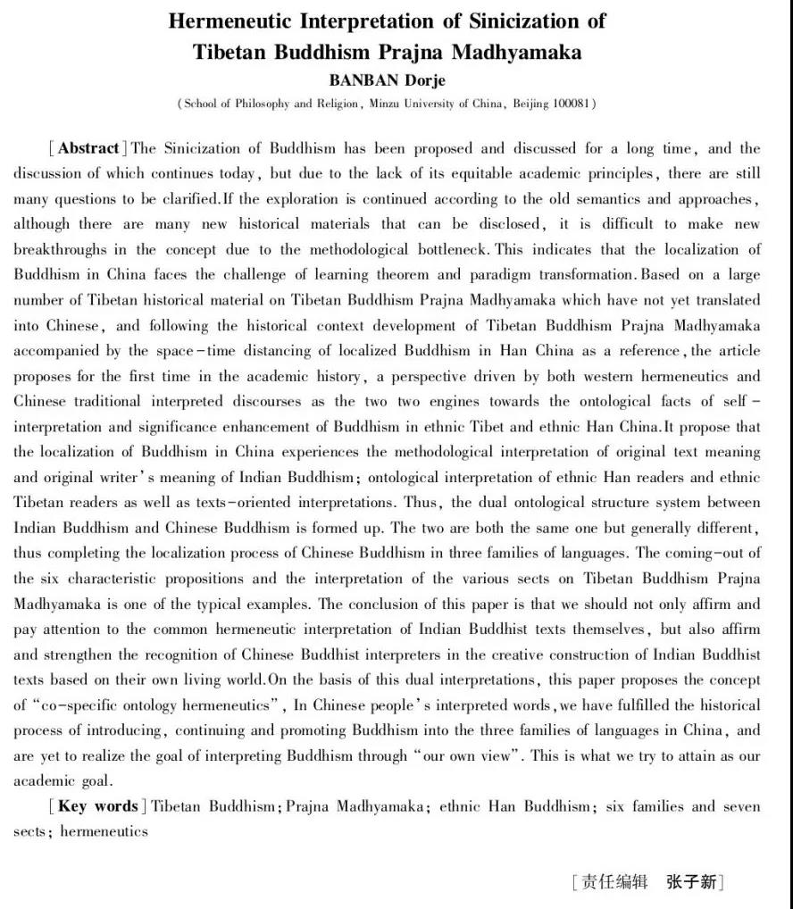 作者簡介:班班多杰(1952-),男(藏族),青海湟中人,中央民族大學(xué)哲學(xué)與宗教學(xué)院教授,博士研究生導(dǎo)師,主要研究方向?yàn)椴貍鞣鸾痰取?/span>