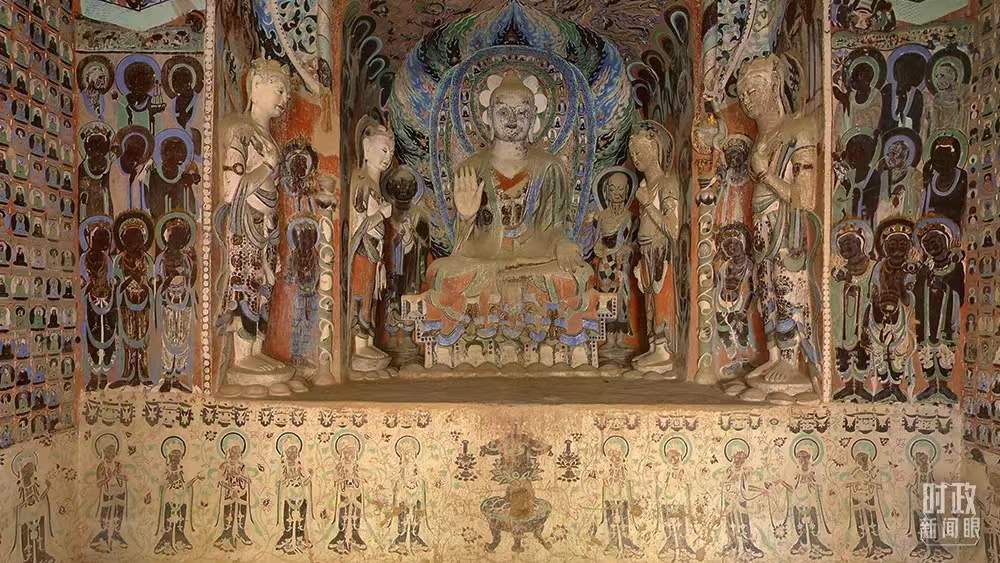 △敦煌莫高窟第420窟,創(chuàng)建于隋,南、西、北壁各開(kāi)一龕,被稱(chēng)為“三龕窟”。敦煌文化被認(rèn)為集建筑藝術(shù)、彩塑藝術(shù)、壁畫(huà)藝術(shù)、佛教文化于一身。(資料圖)