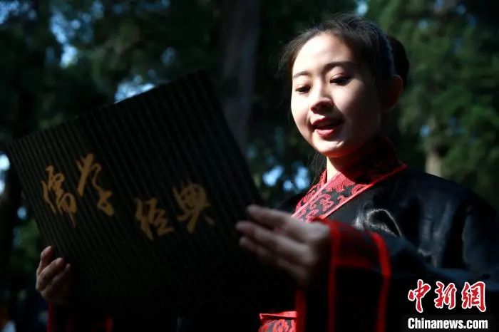 資料圖:學生齊聲合誦儒學經(jīng)典名句?!×籂臄z