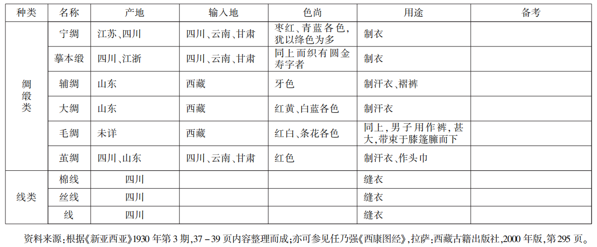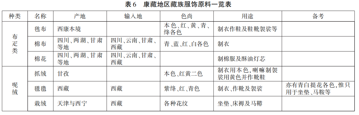 服飾作為人體裝飾的物品,既有驅(qū)寒保暖、裝飾美觀的功能,也具有標識性和非標識性的族群文化特征。打箭爐商貨中服飾占有較大比重,為了滿足漢藏民眾的穿著習(xí)慣、審美等需求,其原料和工匠制作技藝中也呈現(xiàn)出中華民族共同性的元素。