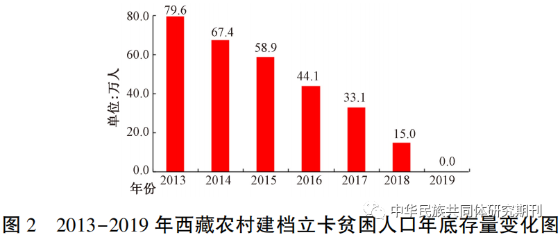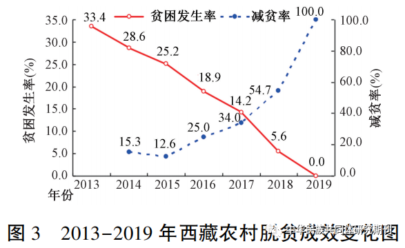 另一方面,中華民族共同體的建設(shè)重要任務(wù)之一便是脫貧攻堅(jiān)。西藏脫貧攻堅(jiān)工作取得了全面勝利(如圖2、圖3所示)使貧困地區(qū)的人民全面脫貧,解決了其生產(chǎn)生活發(fā)展難題,滿足他們對(duì)于幸福生活的追求和向往,這不單單是新時(shí)期能夠全面建成小康社會(huì)的目標(biāo),也是鑄牢中華民族共同體的重要基礎(chǔ)之一。