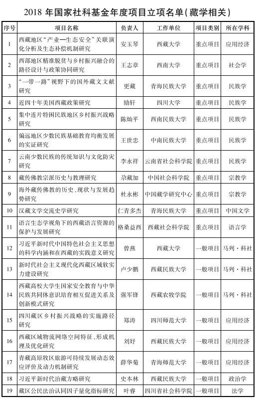 以下為2018年國家社科基金年度項目立項名單(藏學(xué)相關(guān))和2018年國家社科基金青年項目立項名單(藏學(xué)相關(guān))。