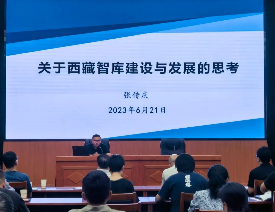 6月21日上午,藏研中心舉辦第41期“藏研講壇”,邀請西藏民族大學(xué)科研處處長、2011協(xié)同創(chuàng)新中心主任張傳慶教授以“關(guān)于西藏智庫建設(shè)與發(fā)展的思考”為主題進(jìn)行分享。藏研中心副總干事廉湘民、李德成出席報(bào)告會(huì)。宗教所副所長、研究員拉先加主持報(bào)告會(huì),藏研中心各部門同志共70余人參加會(huì)議。