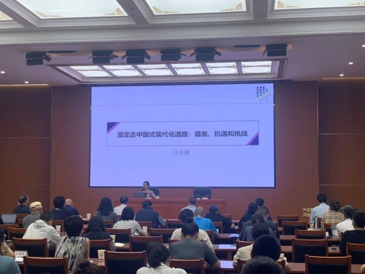 8月21日下午,中國(guó)藏學(xué)研究中心舉辦第43期“藏研講壇”,邀請(qǐng)中國(guó)工業(yè)經(jīng)濟(jì)學(xué)會(huì)會(huì)長(zhǎng)、中國(guó)社科院大學(xué)教授江小涓以“堅(jiān)定走中國(guó)式現(xiàn)代化道路:蘊(yùn)意、機(jī)遇和挑戰(zhàn)”為題作專題報(bào)告。中國(guó)藏學(xué)研究中心黨組書記陳宗榮主持報(bào)告會(huì),副總干事廉湘民、李德成出席。