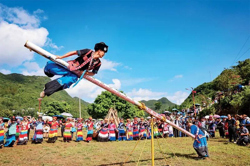 ▲2023年8月10日是彝族傳統(tǒng)節(jié)日火把節(jié),廣西百色市隆林各族自治縣德峨鎮(zhèn)阿搞屯的村民在取火祭火、祭送布谷鳥、打磨秋、抹黑臉、篝火晚會等民族特色活動中歡慶節(jié)日、傳遞祝福。圖為村民展示彝族傳統(tǒng)習(xí)俗——打磨秋。新華社記者胡星宇/攝