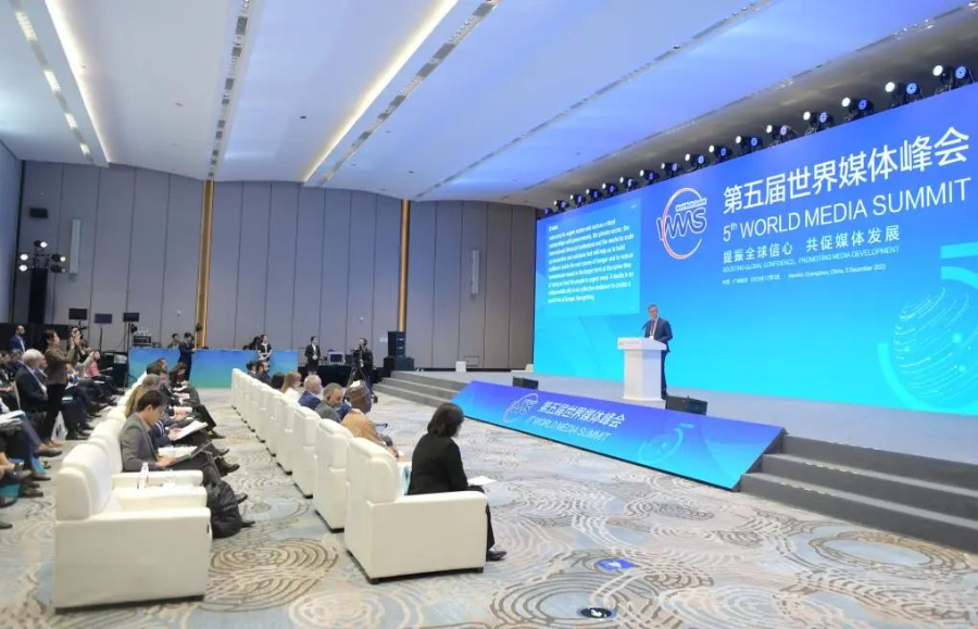 2023年12月4日,以“提振全球信心共促媒體發(fā)展”為主題的第五屆世界媒體峰會在廣州南沙舉行平行分論壇活動,嘉賓在分論壇上發(fā)言。新華社記者盧漢欣攝