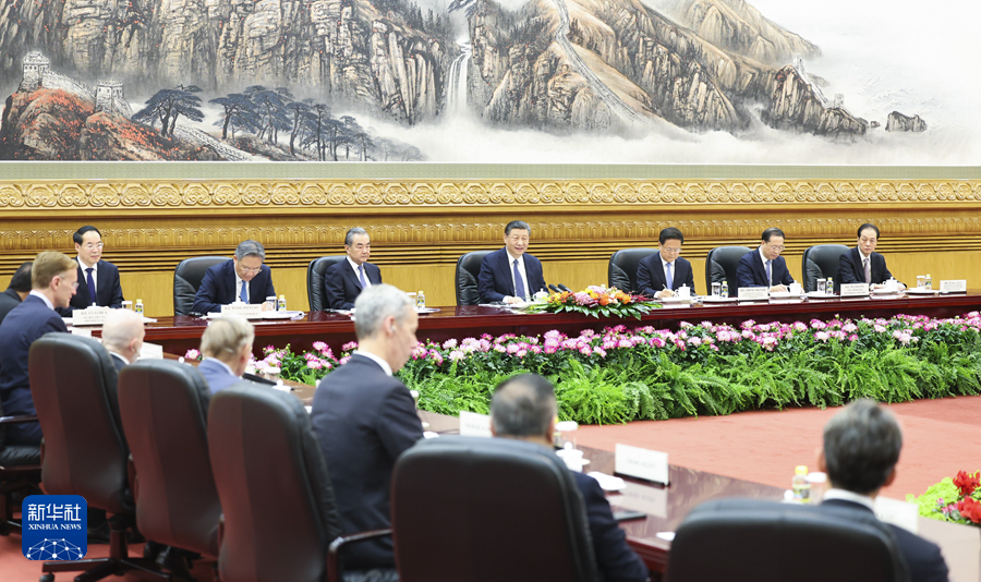 3月27日,國(guó)家主席習(xí)近平在北京人民大會(huì)堂集體會(huì)見美國(guó)工商界和戰(zhàn)略學(xué)術(shù)界代表。新華社記者申宏攝