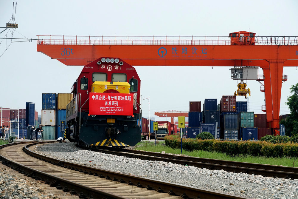 2022年7月29日,合肥至匈牙利布達佩斯的中歐班列從合肥北站物流基地駛出,標志著合肥中歐班列通往匈牙利布達佩斯的線路正式開通。新華社發(fā)(席靜玉攝)