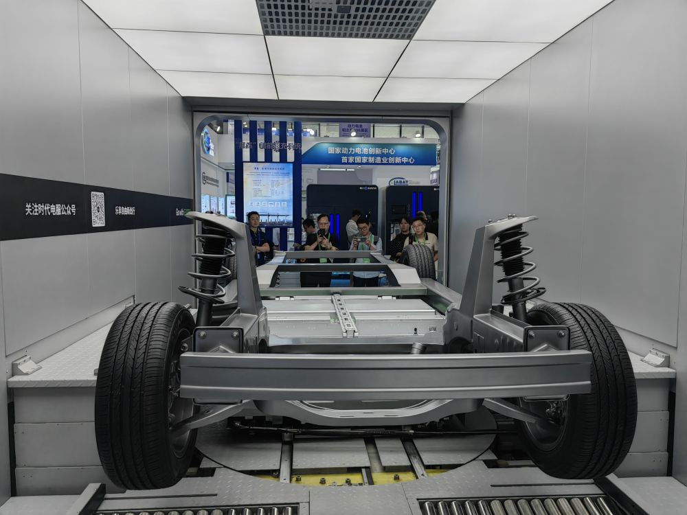 這是在四川省宜賓市舉行的2023世界動力電池大會上展示的新能源汽車換電系統(tǒng)(2023年6月9日攝)。新華社記者胡旭攝