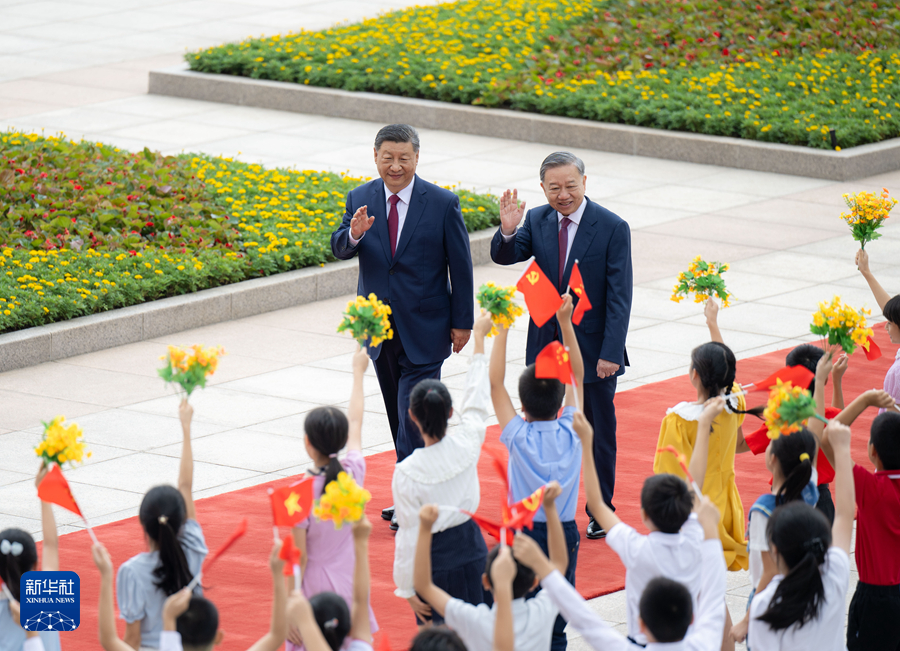8月19日,中共中央總書記、國家主席習近平在北京人民大會堂同來華進行國事訪問的越共中央總書記、國家主席蘇林舉行會談。這是會談前,習近平在人民大會堂東門外廣場為蘇林舉行歡迎儀式。新華社記者翟健嵐攝