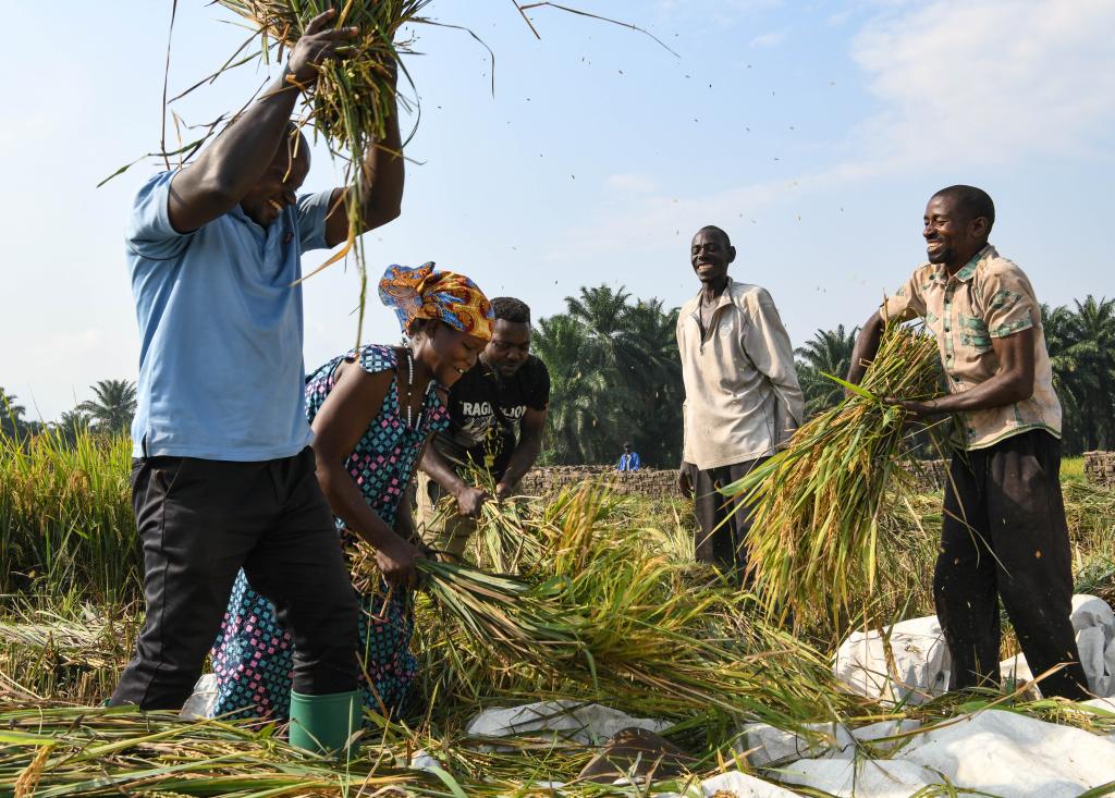 2023年6月20日,在布隆迪布班扎省基航加縣,農(nóng)民在田間給雜交水稻脫粒。多年來,中國派出農(nóng)業(yè)專家深入布隆迪各地,對當(dāng)?shù)氐巨r(nóng)提供技術(shù)指導(dǎo),為糧食增產(chǎn)增收做出重要貢獻(xiàn)。新華社記者韓旭攝