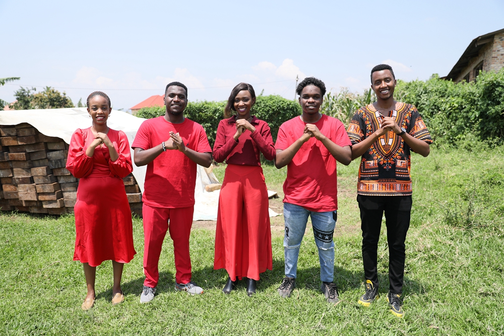 2024年2月7日,在盧旺達(dá)南方省卡莫尼地區(qū),盧旺達(dá)青年團(tuán)隊成員向鏡頭前觀眾送上新春祝福。新華社發(fā)(黃萬晴攝)