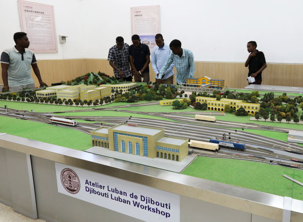 2022年9月19日,在位于吉布提首都吉布提市的吉布提工商學(xué)校,學(xué)生在魯班工坊鐵道運營沙盤教學(xué)區(qū)學(xué)習(xí)。新華社記者董江輝攝