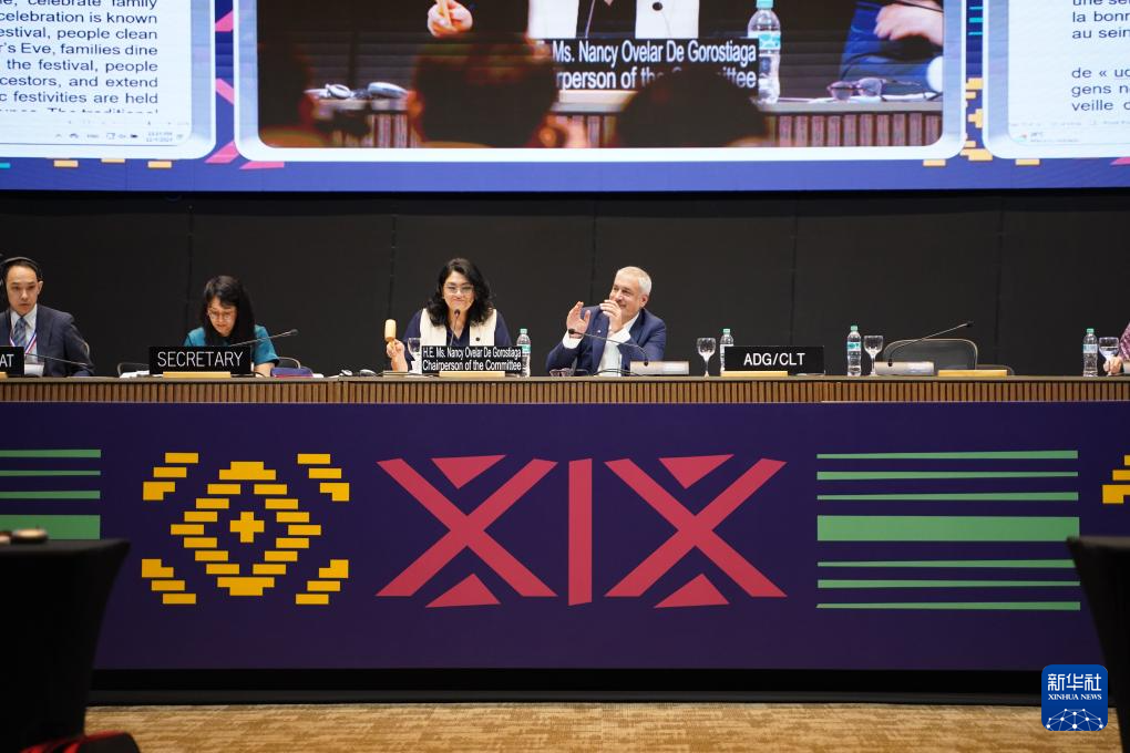 這是12月4日在巴拉圭亞松森拍攝的聯(lián)合國教科文組織保護非物質(zhì)文化遺產(chǎn)政府間委員會第19屆常會評審現(xiàn)場。新華社記者朱雨博攝