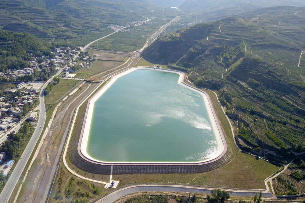 這是2021年9月8日在甘肅省天水市拍攝的引洮供水工程楊家灣調(diào)蓄水池(無人機照片)。新華社記者范培珅攝
