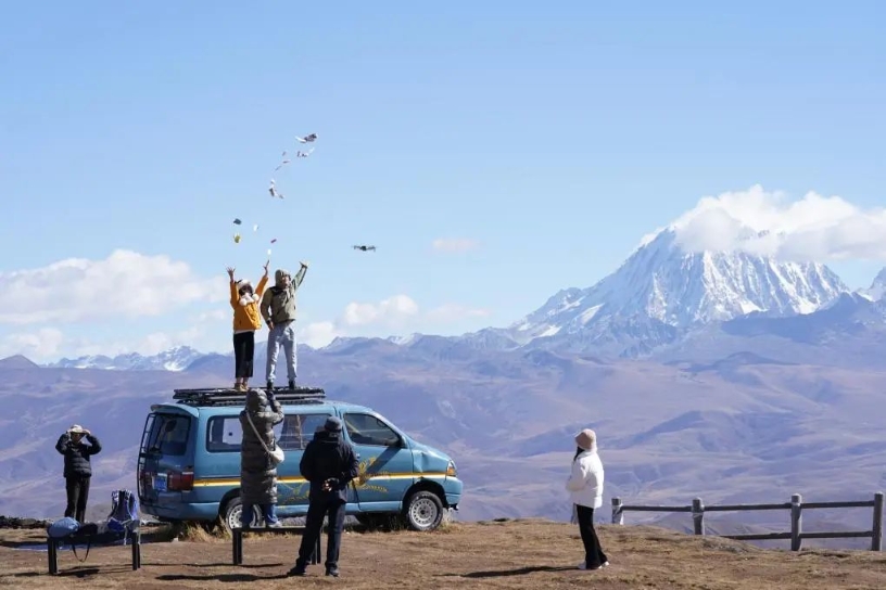 在甘孜州稻城縣,依托噶通鎮(zhèn)的大科學(xué)裝置,當(dāng)?shù)刂Υ蛟臁疤煳男℃?zhèn)”。在雪山腳下露營、登埡口遠(yuǎn)觀日照金山,日漸興起的“觀山熱”成了年輕旅行者的新寵。甘孜州建設(shè)了環(huán)大貢嘎“一心六片”區(qū)域觀景點(diǎn)位52個,開辟了30條環(huán)貢嘎主題旅游線路。