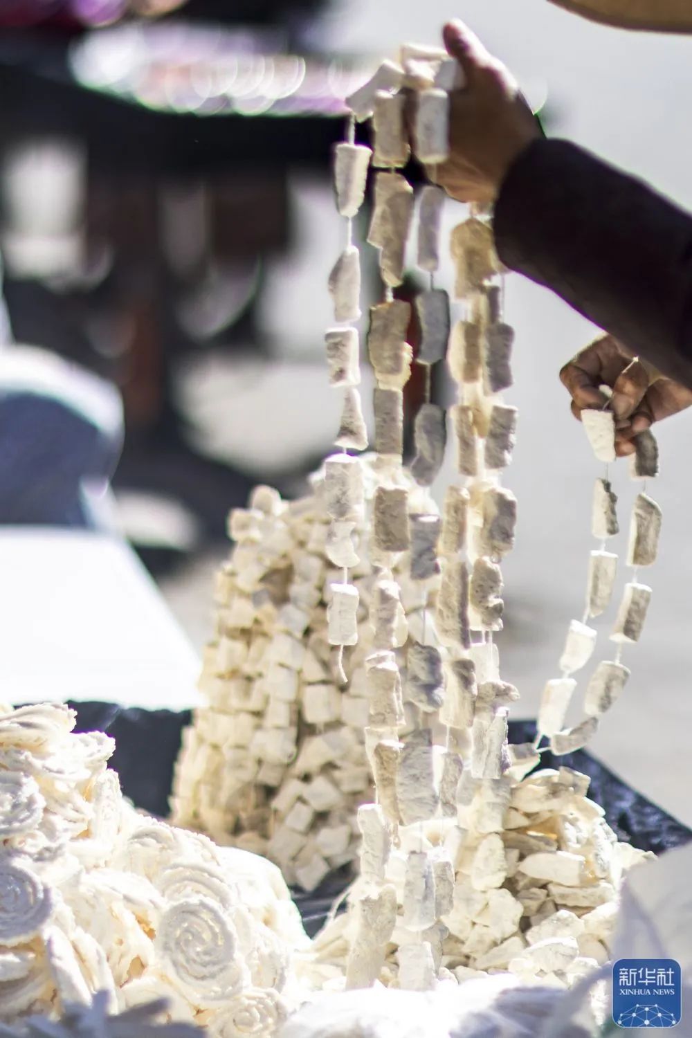 2月25日,商販在拉薩街頭銷售奶渣。新華社記者姜帆攝