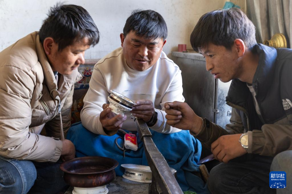 3月6日,扎西吉彩的手工匠人在討論銀器的造型。新華社記者姜帆攝