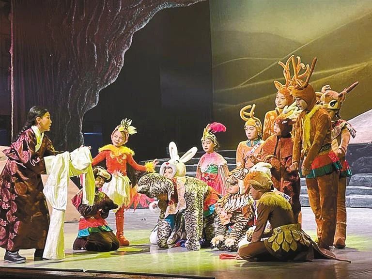 (來源:《西藏日報》2025年3月13日第5版,文/圖:曉勇、馮琳琳,圖片均為少兒舞臺劇藏戲《頓月頓珠》劇照)