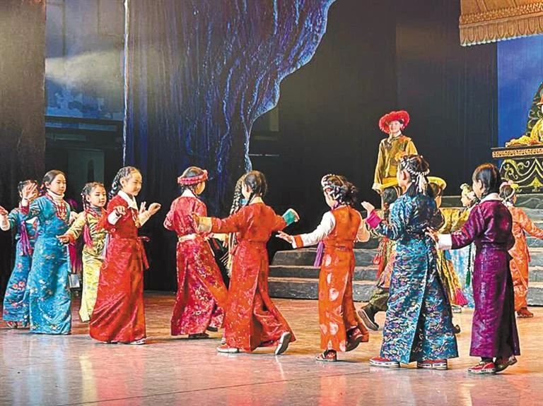 用少兒舞臺劇藏戲《頓月頓珠》導(dǎo)演之一云登羅布的話說:“從最初的‘摸著石頭過河’,到2023年雪頓節(jié)首演大獲成功,再到如今公演,主創(chuàng)團(tuán)隊對孩子們的要求再度提升——要在表演細(xì)節(jié)上做功課,在舞臺上真唱真說真情表演。他們都做到了,他們是了不起的!”