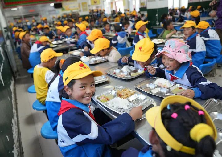 西藏林芝市工布江達縣娘蒲鄉(xiāng)中心小學(xué)學(xué)生在食堂用餐(2024年9月3日攝)。新華社記者晉美多吉攝