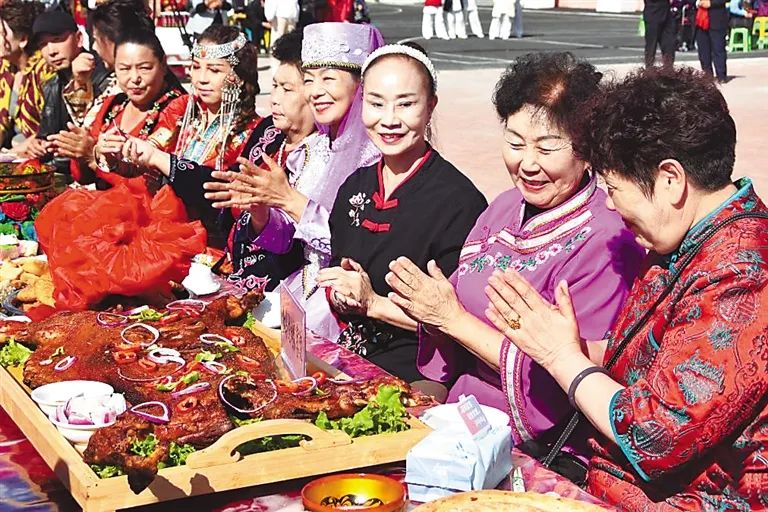 ▲2024年9月27日,在新疆塔城市新城街道哈爾墩社區(qū)舉行的“鄰里節(jié)百家宴”現(xiàn)場(chǎng),居民在品嘗各色美食。新華社記者顧煜攝
