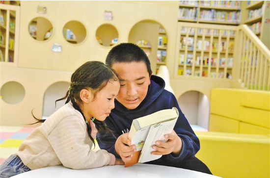 小朋友在那曲市色尼區(qū)南部新城的“溫暖嘉·色尼城市書(shū)房”閱讀。西藏日?qǐng)?bào)記者汪純攝