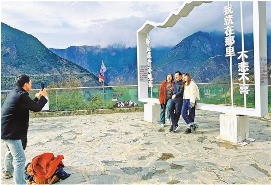 游客在雅魯藏布江大拐彎觀景臺(tái)拍照留念。西藏日?qǐng)?bào)記者白瑪澤旺攝