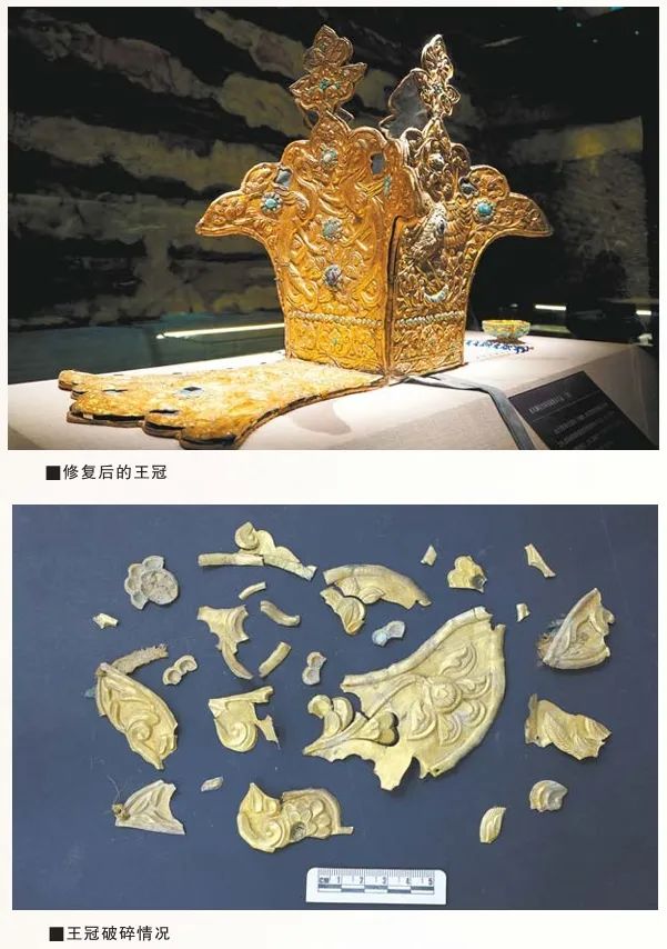 經(jīng)過(guò)上萬(wàn)次的精密焊接,王冠和冕旒的形制與精美紋飾得到恢復(fù),高原絲路文明之冠再次煥發(fā)千年前的絢爛光彩。