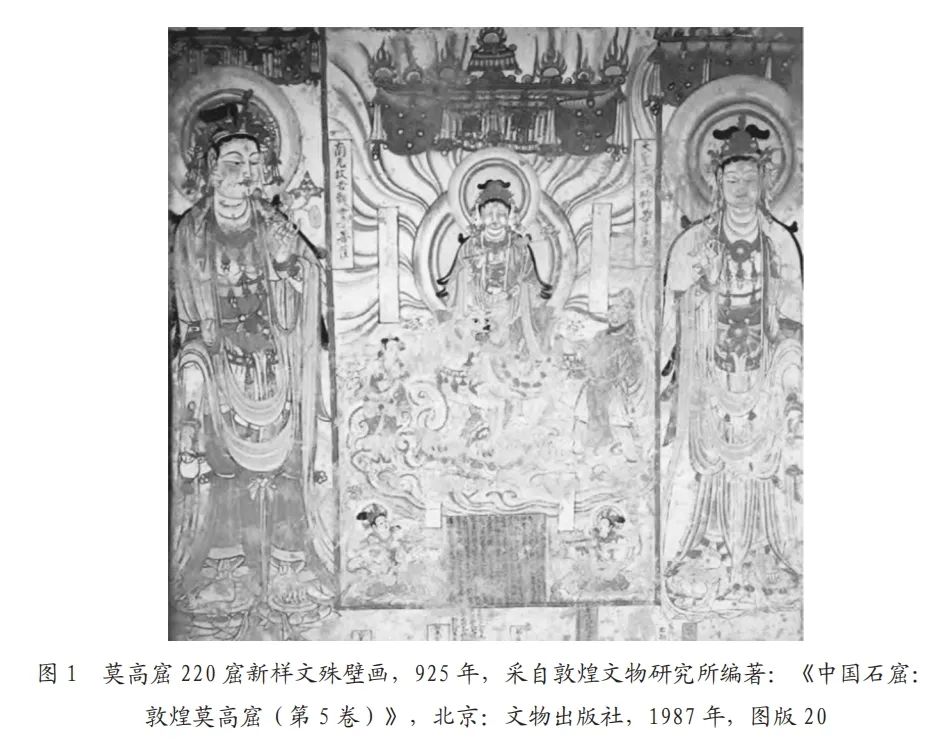 1.新樣文殊是唐末以五臺(tái)山文殊信仰傳說(shuō)為基礎(chǔ)而形成的一種題材和圖像,由五臺(tái)山傳入敦煌。