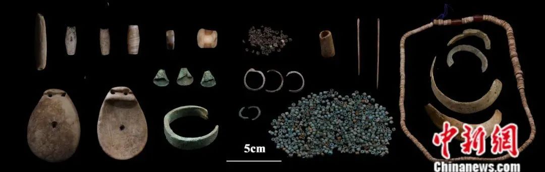 瑪不錯(cuò)遺址第二期遺物(石質(zhì)、骨質(zhì)、金屬裝飾品,骨針、滑石珠、紅玉髓等)。受訪者供圖