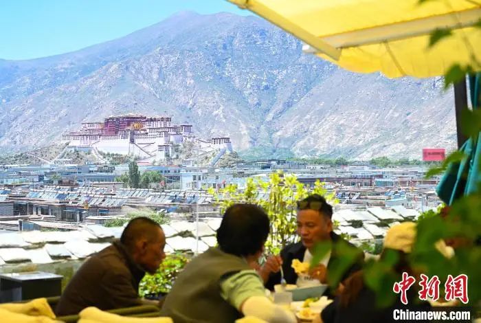 6月22日,拉薩市中心的一家觀景餐廳,可以眺望布達拉宮。中新社記者趙朗攝